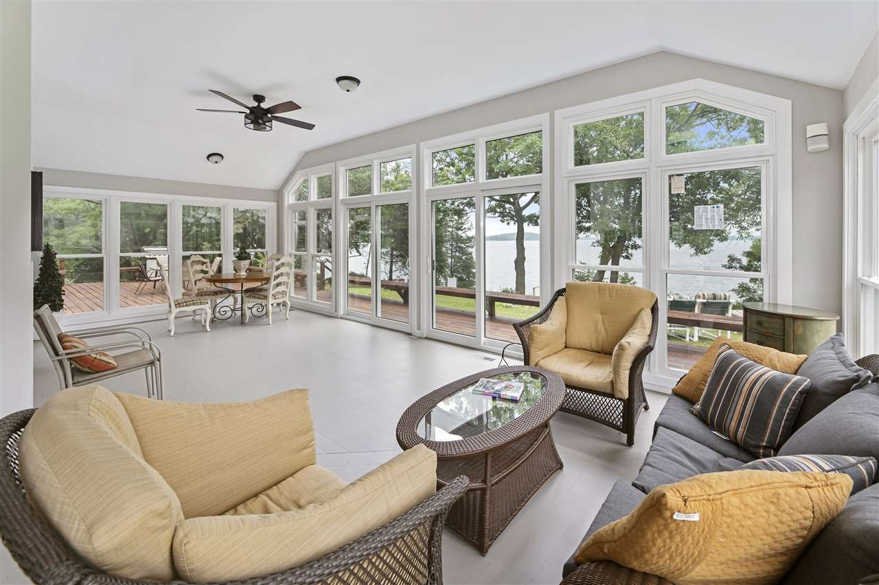 Three Oaks Bluff has approximately 200′ of lake frontage and approximately 4,000′ of living space. The large L-shaped porch is a great spot to sit, relax, or catch a nap and still get that wonderful lake breeze.